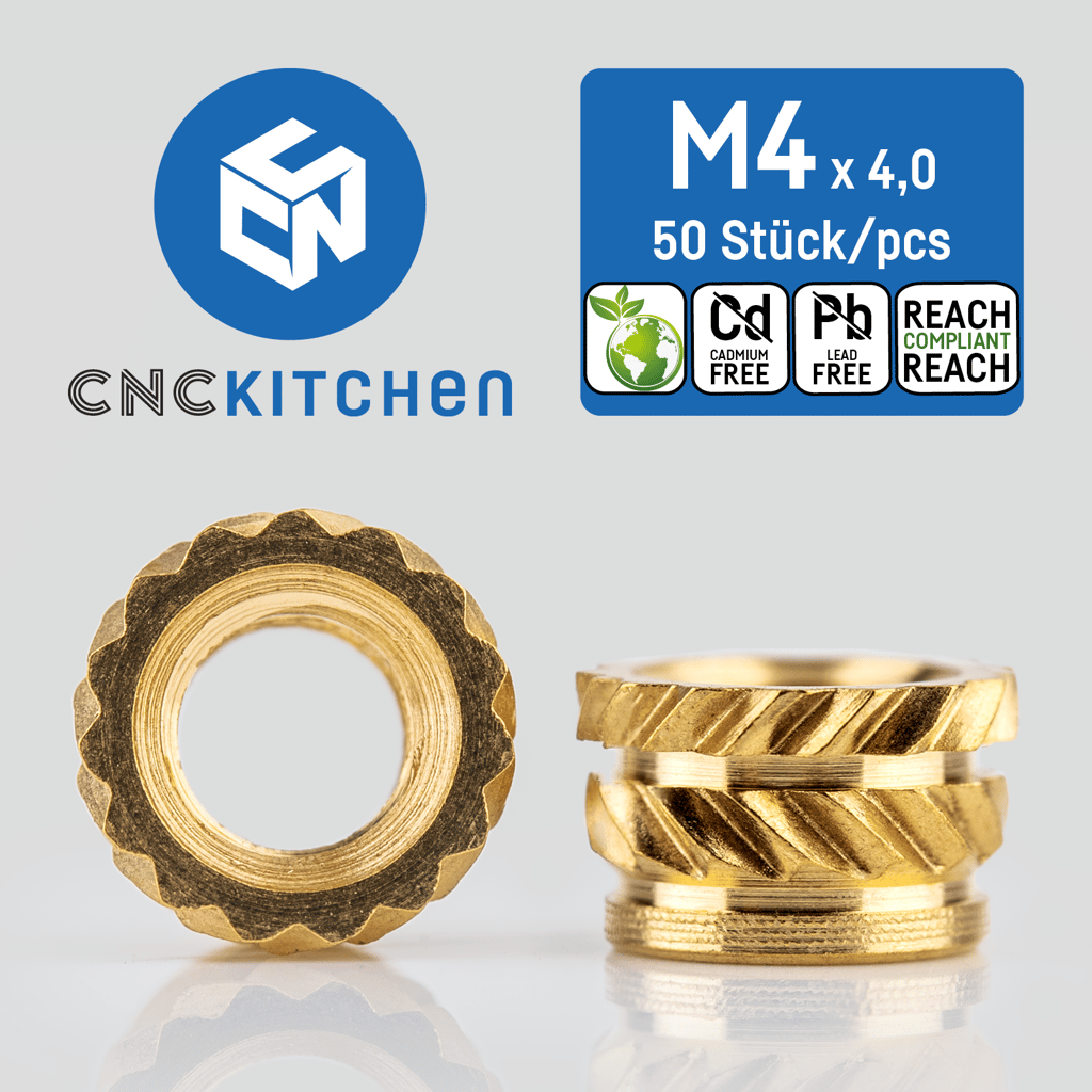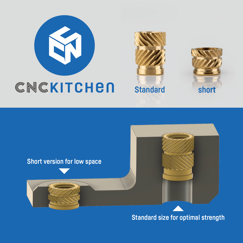 - ORIGINAL CNC Kitchen závitové vložky určené pro 3D tištěné díly (z PLA, PETG, ABS, atd.),