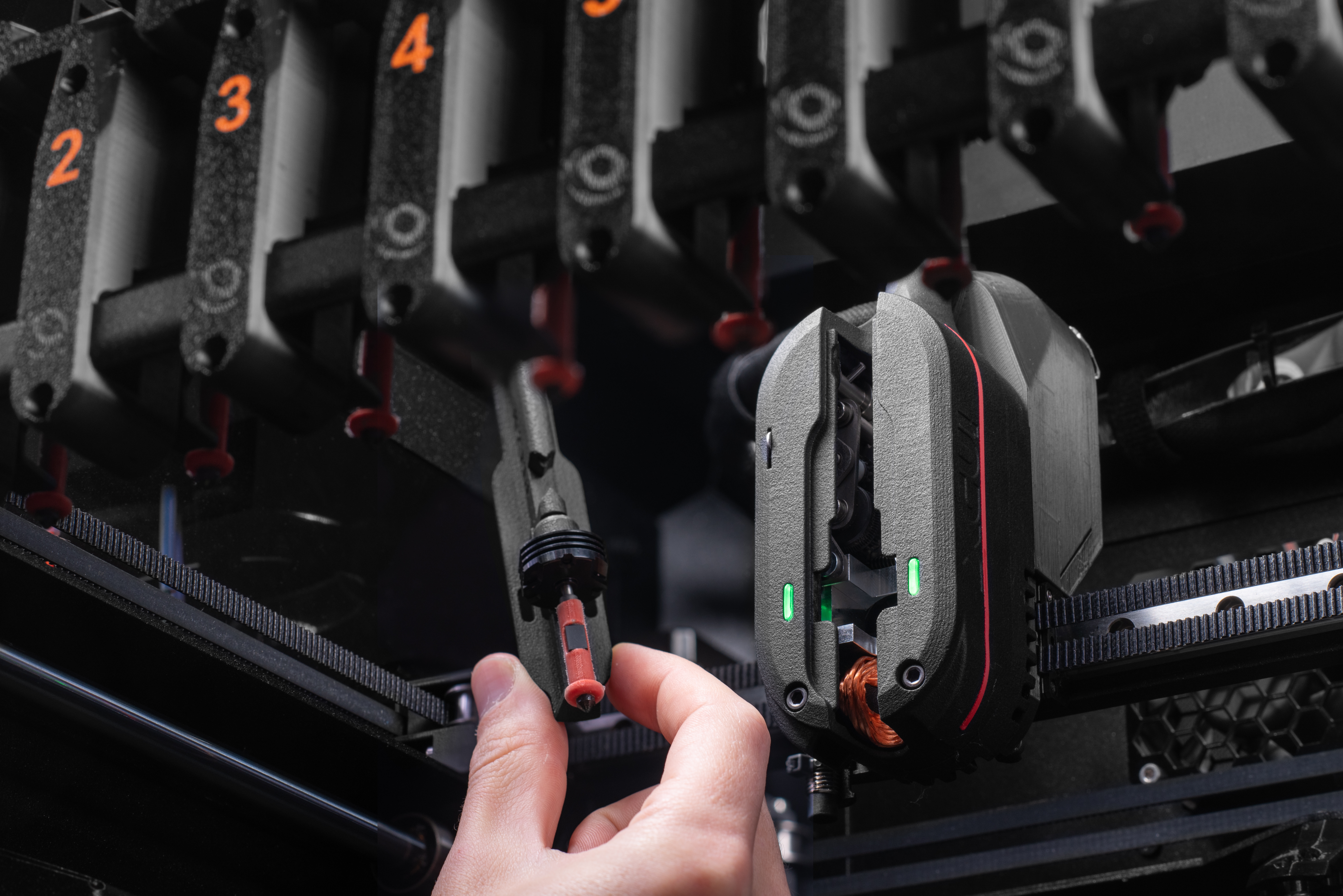 In an exclusive partnership with the best in extrusion, Bondtech, we’re introducing the perfect solution for everyone who demands maximum speed, low waste, and high tool-count on a compact CoreXY platform.