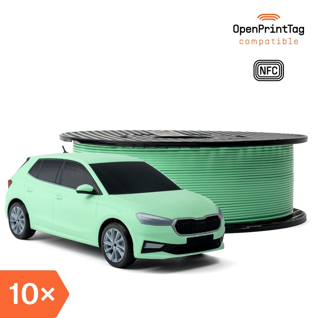 Cada nueva bobina Prusament viene ahora con una etiqueta NFC totalmente reescribible usando la tecnología del estándar OpenPrintTag. Está diseñado para funcionar con todas las marcas y ecosistemas. Es de uso gratuito, se puede ampliar sin coste alguno y está abierto para que cualquiera pueda desarrollarlo. Y lo más importante, funciona completamente sin conexión. Todos los datos esenciales se almacenan directamente en la etiqueta. Tu impresora puede reconocer la bobina al instante, sin depender de servicios en la nube ni de proveedores exclusivos. La etiqueta OpenPrintTag adherida a tu bobina Prusament contiene datos esenciales sobre el material y se puede leer con la app de móvil de Prusa.