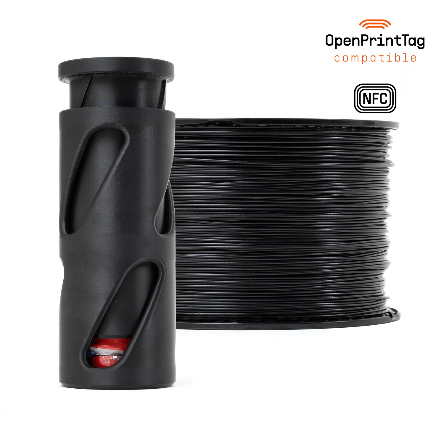 Chaque nouvelle bobine de Prusament est désormais livrée avec un tag NFC entièrement réinscriptible compatible avec la norme OpenPrintTag. Elle est conçue pour fonctionner avec différentes marques et écosystèmes. Son utilisation est gratuite, son extension est gratuite et chacun peut la développer à partir de là. Plus important encore, elle fonctionne entièrement hors ligne. Toutes les données essentielles sont stockées directement sur le tag. Votre imprimante peut reconnaître instantanément la bobine, sans dépendre de services cloud ni être liée à un fournisseur exclusif. L'OpenPrintTag fixé à votre bobine Prusament contient des données essentielles sur le matériau et peut être lue avec l'application mobile Prusa.