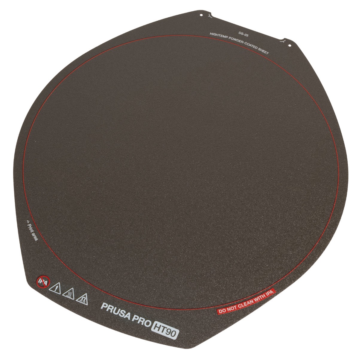 Płyta HighTemp jest przeznaczona do drukowania specjalnych materiałów wysokotemperaturowych, takich jak PEEK, PEEK-CF, PEI, PEKK i PPSU, które mogą mieć słabą (lub zbyt silną) przyczepność do standardowych płyt. Płyta ta jest kompatybilna z Prusa Pro HT90.
