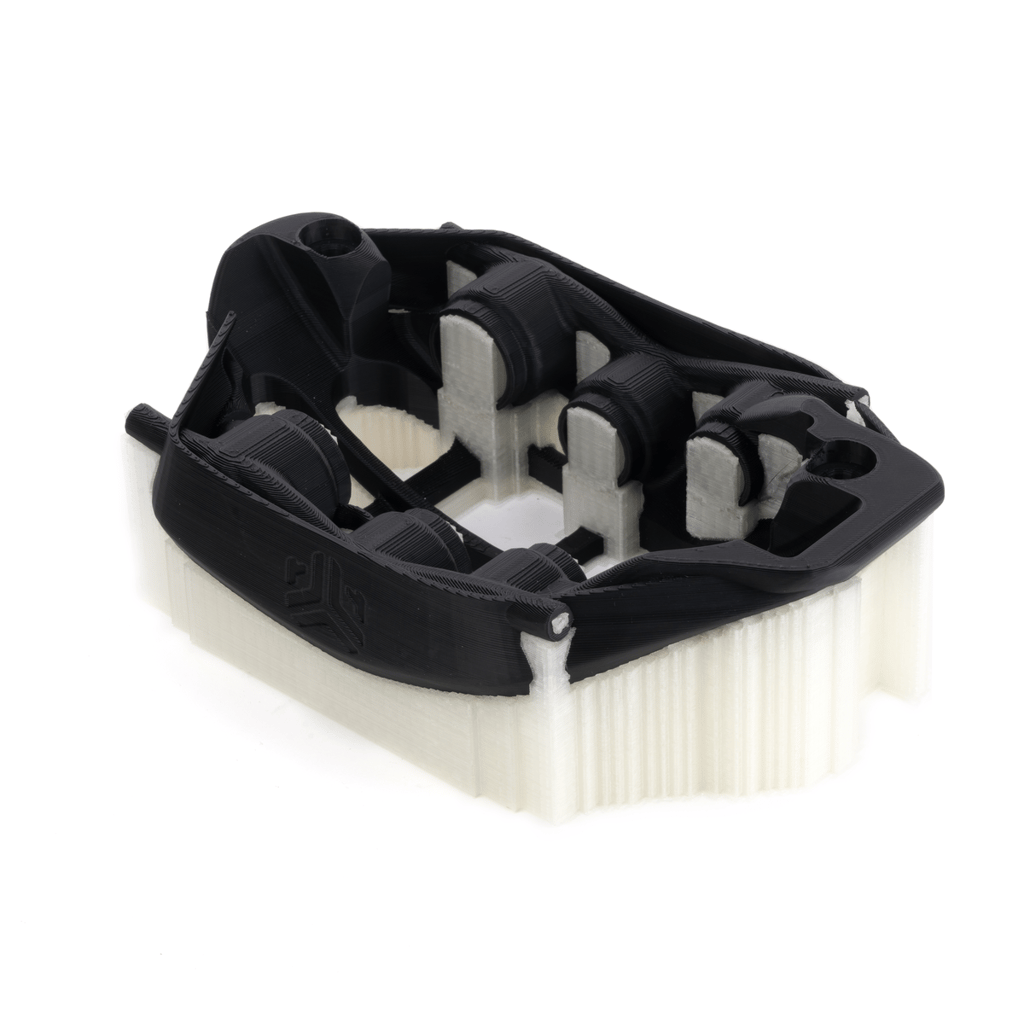 Reduce the need for supports and print quicker with less material! Thanks to the 360° cooling, the MK4S allows you to print overhangs of up to 75° without supports, significantly cutting down on print costs and time. This also simplifies printing flexible materials like TPU, where removing supports is often a challenge.