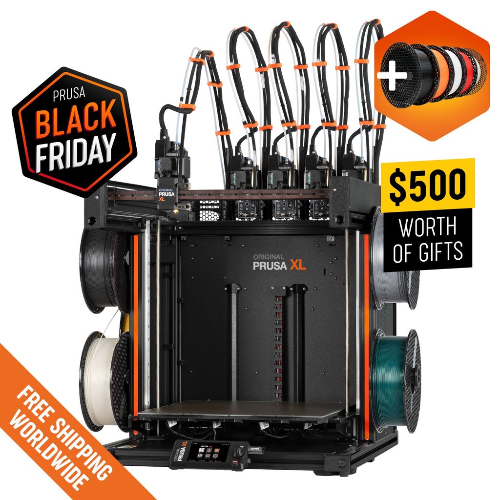 The Original Prusa XL is the most innovative 3D printer on the market, offering possibilities that no single-nozzle multi-material printer can replicate. With a state-of-the-art five-head tool changer, top print quality, extreme precision, huge print volume, and zero-waste printing, the Original Prusa XL establishes a new category for itself.