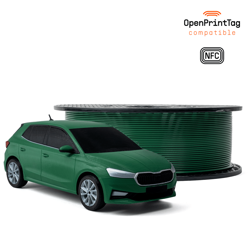 Prusament PLA Emerald Green is a result of our cooperation with a well-known brand. This Prusament color is a perfect match for the official brand colors of the Czech car manufacturer Škoda Auto.