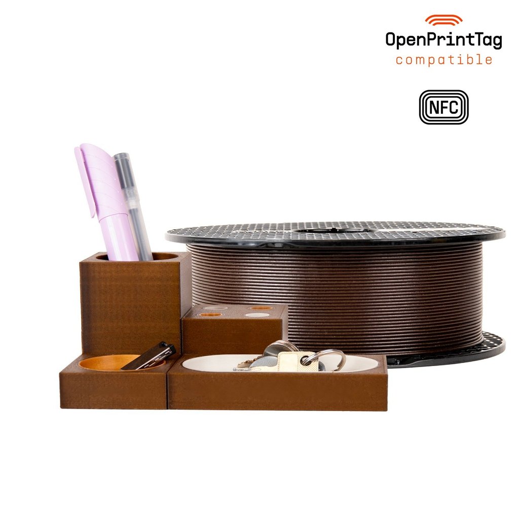 Prusament rPLA Natural Pigments is our in-house made PLA filament with ±0.03mm manufacturing tolerance and natural pigments. The filament is made of recycled PLA from industrial waste. No artificial pigments are added; the coloring of this Prusament comes from processed organic waste, resulting in a unique shade for every batch. You can inspect the parameters of every spool we made at prusament.com. Check the sample spool!