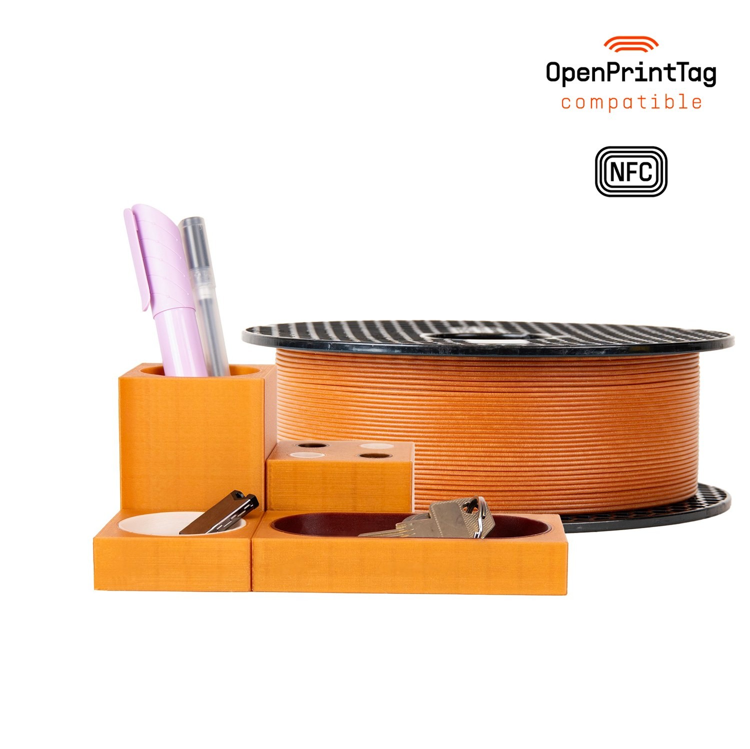 Prusament rPLA Natural Pigments is our in-house made PLA filament with ±0.03mm manufacturing tolerance and natural pigments. The filament is made of recycled PLA from industrial waste. No artificial pigments are added; the coloring of this Prusament comes from processed organic waste, resulting in a unique shade for every batch. You can inspect the parameters of every spool we made at prusament.com. Check the sample spool!